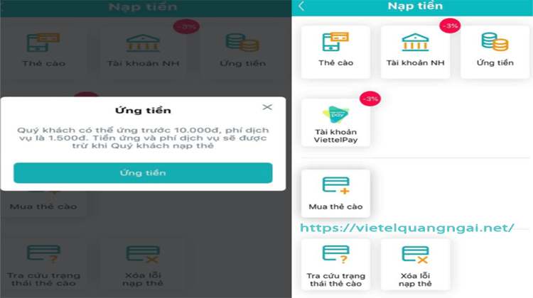 Hình thức ứng trước 50k của Viettel