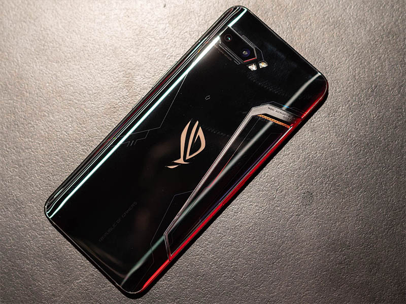 Bên cạnh đó, phần mặt lưng máy còn được trang bị cụm camera kép, 2 đèn LED và thương hiệu ASUS ROG được tích hợp đèn màu (có khả năng chuyển sắc RGB). Kết hợp cùng những đường nét gai góc, ROG Phone II càng trở nên thu hút và đậm chất game thủ.