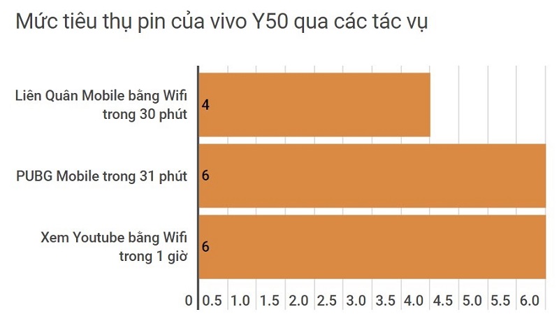 Ngay cả những tác vụ phức tạp như chơi game cũng không làm khó được máy. Vì vậy trong xu hướng sử dụng smartphone để làm việc và học tập nhiều như hiện nay, việc sở hữu một chiếc smartphone có thời lượng pin lâu như vivo Y50 sẽ tăng thêm sự tự tin và thoải mái. Bạn có thể sử dụng cả ngày dài cho bạn.