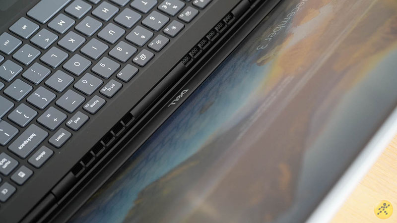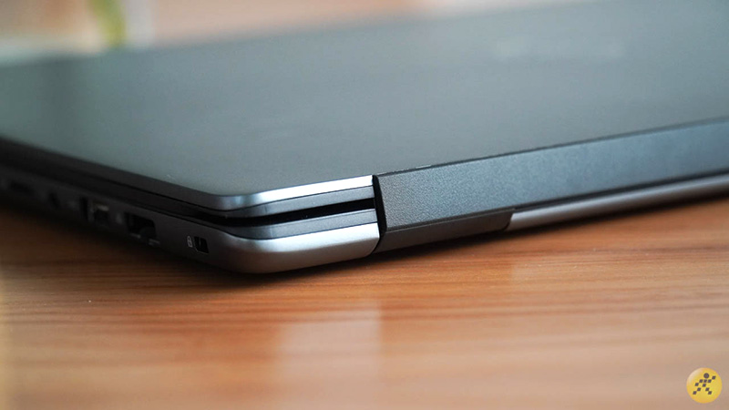 Về thiết kế, phần tản nhiệt này sẽ nằm ở mặt sau của bàn phím nên khi gập máy lại khiến bạn sẽ không nhận ra. Cá nhân mình rất thích phong cách thiết kế này của Dell. Nó giúp máy liền lạc và không bị lỗi khi nhìn từ nhiều hướng xung quanh.