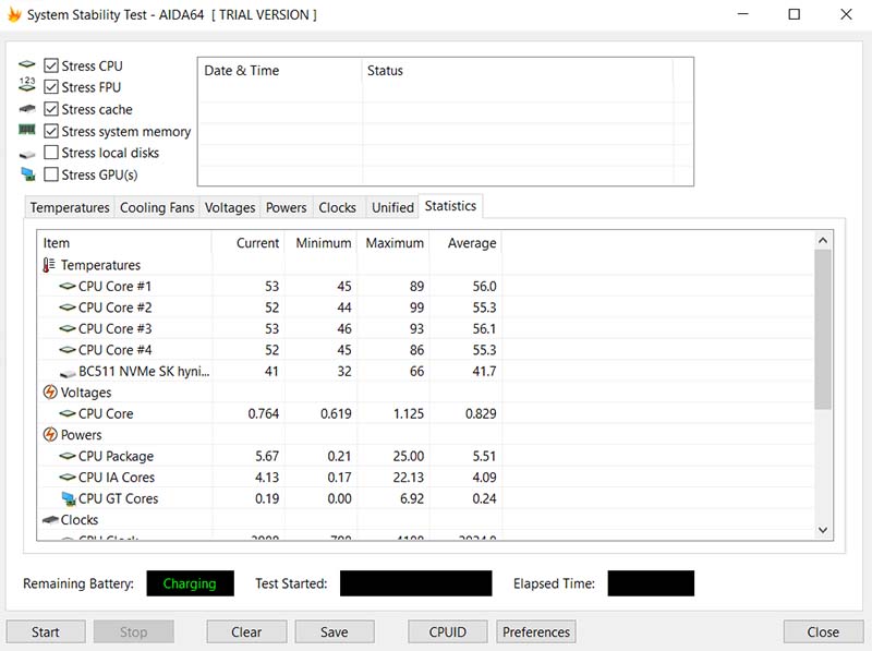 Để đánh giá việc tản nhiệt trên máy có hoạt động hiệu quả hay không, mình đã sử dụng phần mềm AIDA64. Có thể thấy, phần mềm AIDA64 đo nhiệt độ trung bình của Dell Vostro 5590 dao động ở mức 53 độ C.