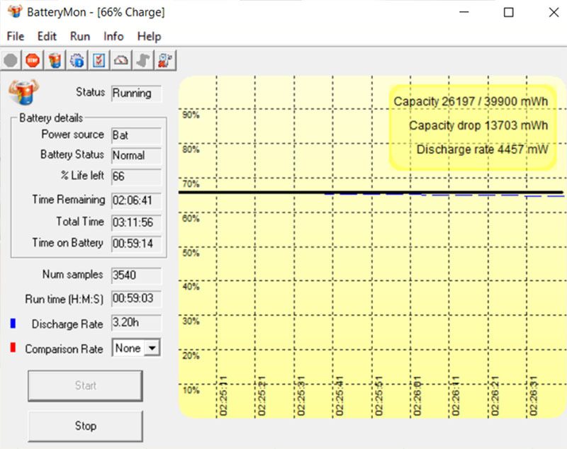 Câu hỏi đặt ra là thời lượng pin có ấn tượng không? Để trả lời câu hỏi đó, mình đã sử dụng ứng dụng quen thuộc BatteryMon để đo thời lượng pin Dell Vostro 5590. Mình đo độ sáng màn hình tình trạng pin ở mức 50%, loa ngoài 0%, mở WiFi liên tục, thông báo (Facebook) luôn bật và sử dụng các tác vụ bình thường .