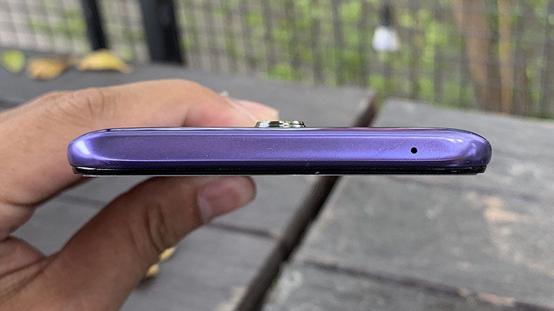 Với tính năng cạnh viền trong suốt, cạnh dưới máy lần lượt có cổng tai nghe 3,5 mm, mic thoại, cổng sạc micro-USB, loa ngoài.