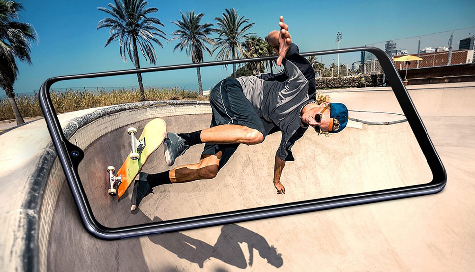 Samsung đã trang bị cho Galaxy A30s màn hình Infinity-V với kích thước lớn lên đến 6,4 inch. Với viền bezel mỏng và tỷ lệ hiển thị cao so với thân máy, bạn có thể thỏa sức đắm chìm trong thế giới giải trí đẳng cấp nhất. Công nghệ Super AMOLED và màn hình giúp hỗ trợ độ phân giải chuẩn HD +, hứa hẹn mang đến cho bạn những khung hình sắc nét, màu sắc sống động.