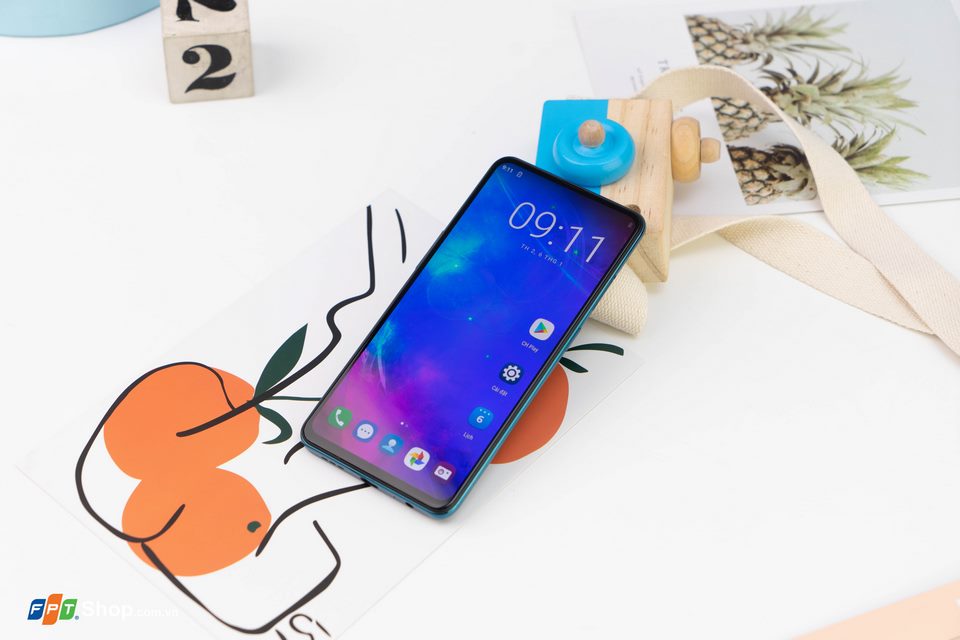 Xét ở mặt trước thì điểm Điển hình của Vsmart Active 3 là chiếc camera selfie kiểu thò thụt (pop-up) 16MP tích hợp motor. Ngoài việc mang đến cảm giác hiện đại, thiết kế này còn có thể giải phóng không gian cho màn hình. Vì thiết kế viền ngoài được thực hiện mỏng tới mức tối đa, liên kết với độ phân giải Full HD + nên màn hình 6.39 inch của Active 3 đã thực sự phát huy được hết công suất.
