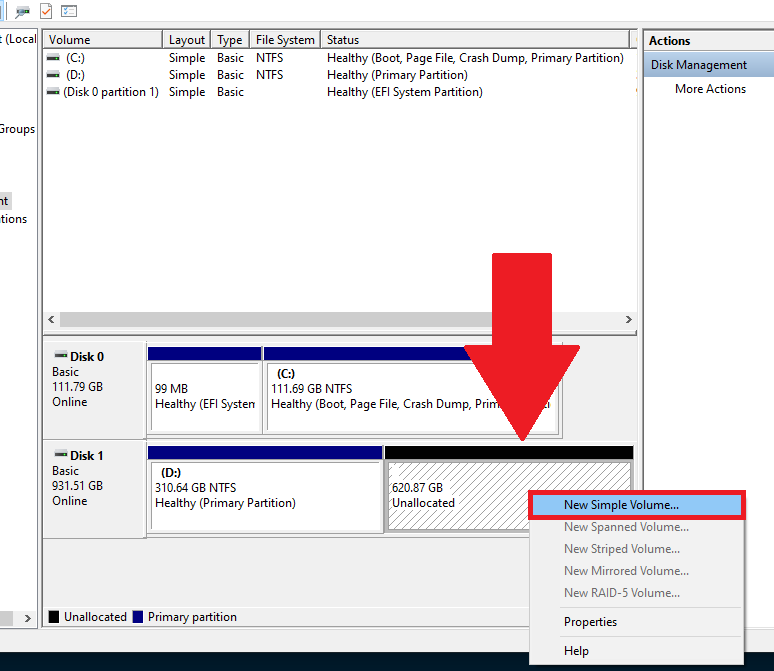 Sau khi hoàn thành phân vùng, chúng ta sẽ thấy một phân vùng Unallocated (phân vùng này chưa được sử dụng), để sử dụng phân vùng này, chúng ta cần tạo nó như một phân vùng đĩa cứng mới.