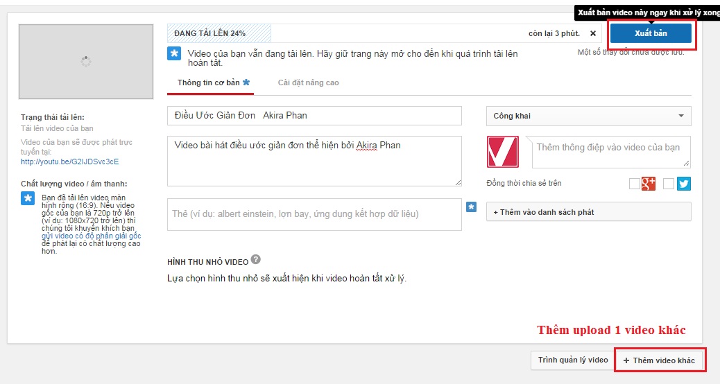 Lưu theo dõi các thông số video trước đó, xem thật kỹ và chỉnh sửa nhanh chóng trước khi up lên hẳn hoàn toàn. Bạn nên tìm hiểu luật chơi của Youtube trước khi up lên, nhất là luật bản quyền bạn nhé.